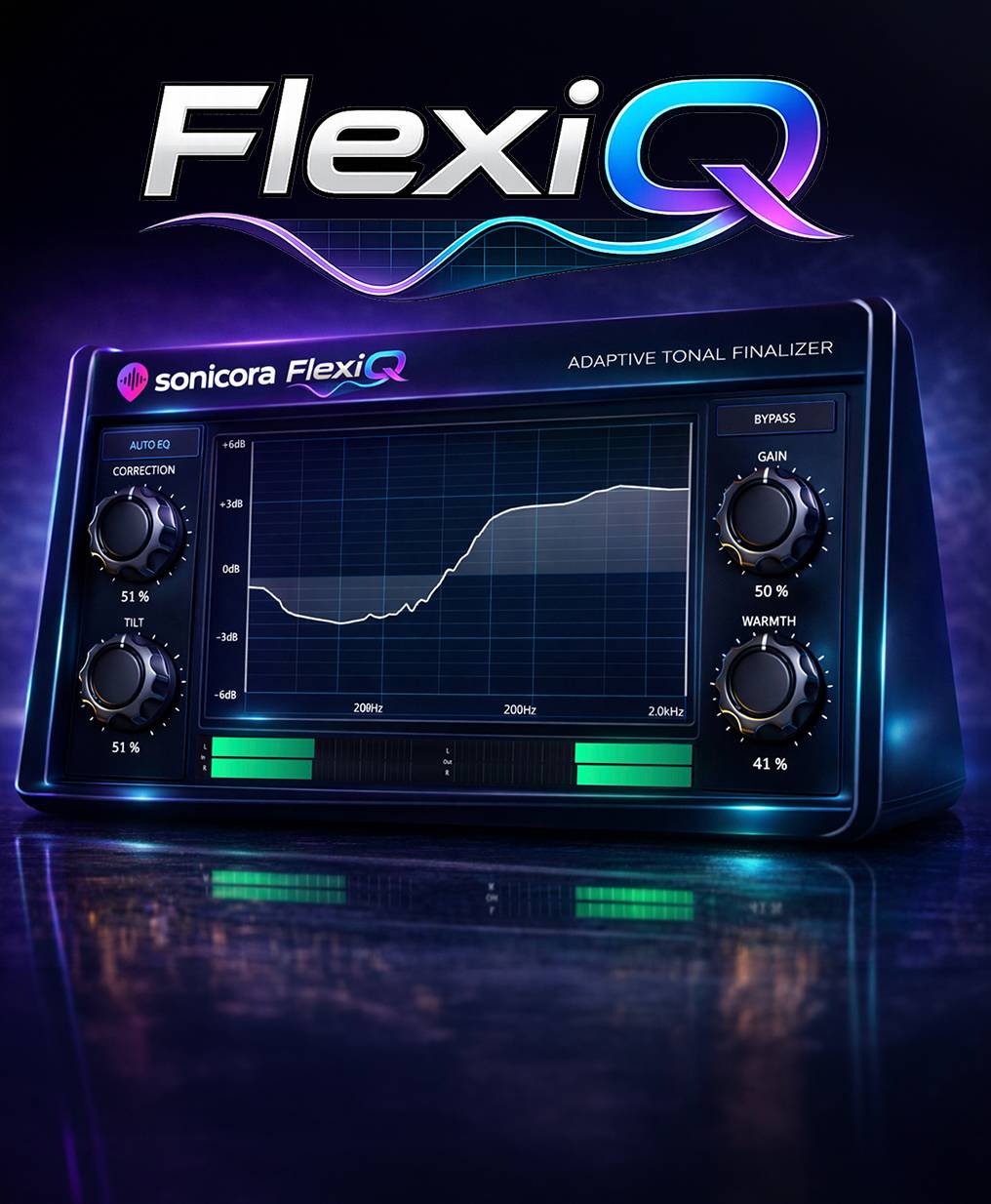 FlexiQ by Sonicora combines correction, tilt, warmth, and gain so you can shape tone quickly without breaking creative flow. AU + VST3 support keeps it ready for modern DAW sessions.